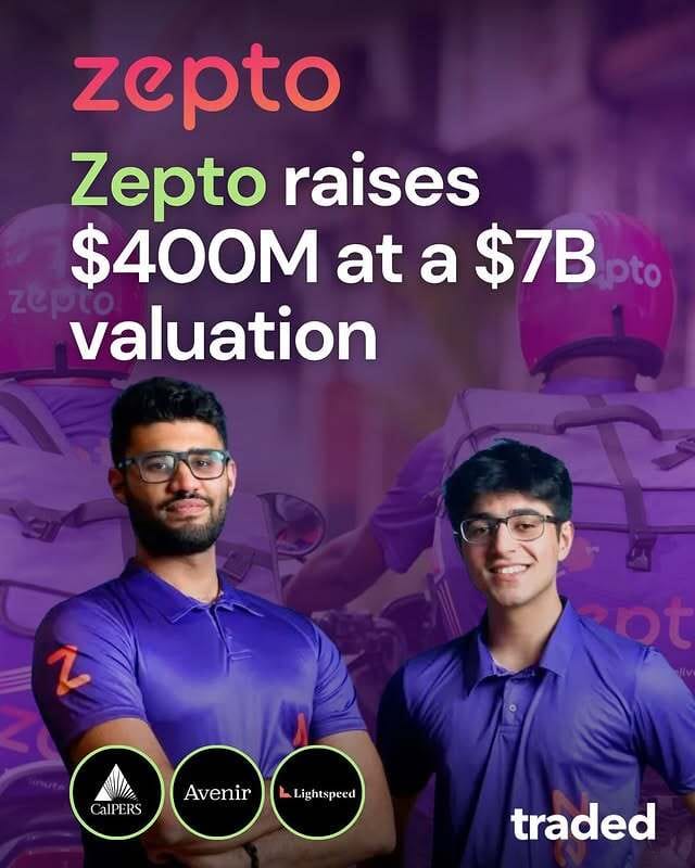 3️⃣ Zepto – $450M funding at a $7B valuation, pushing ahead in India’s fast-moving delivery race.