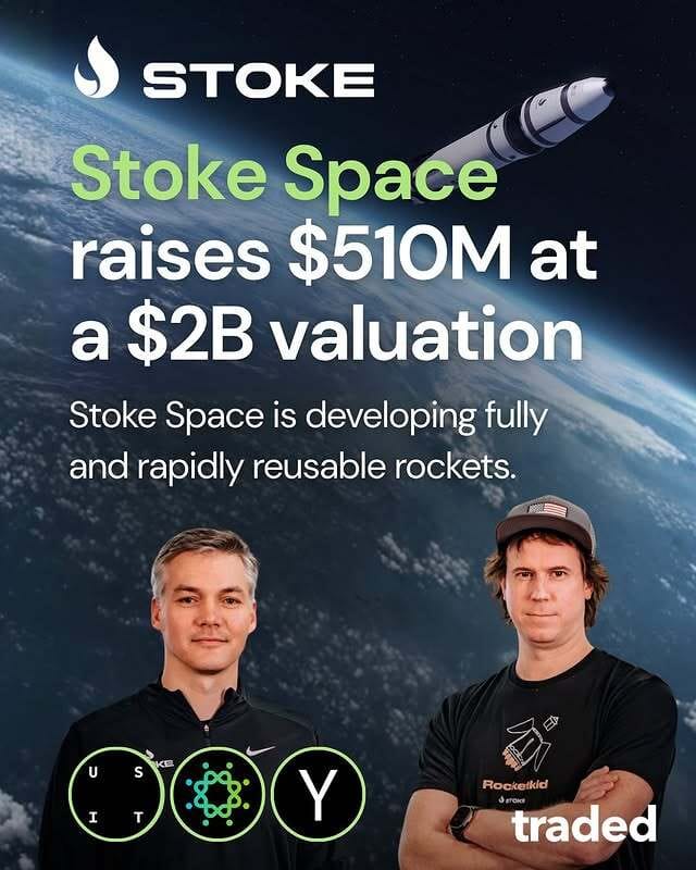 2️⃣ Stoke Space – $510M seed round to scale its reusable rocket platform and push deeper into commercial space.