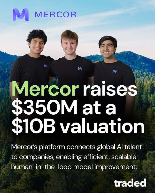 🤖 Mercor raised $350M at a $10B valuation, powering human-in-the-loop AI training at scale.